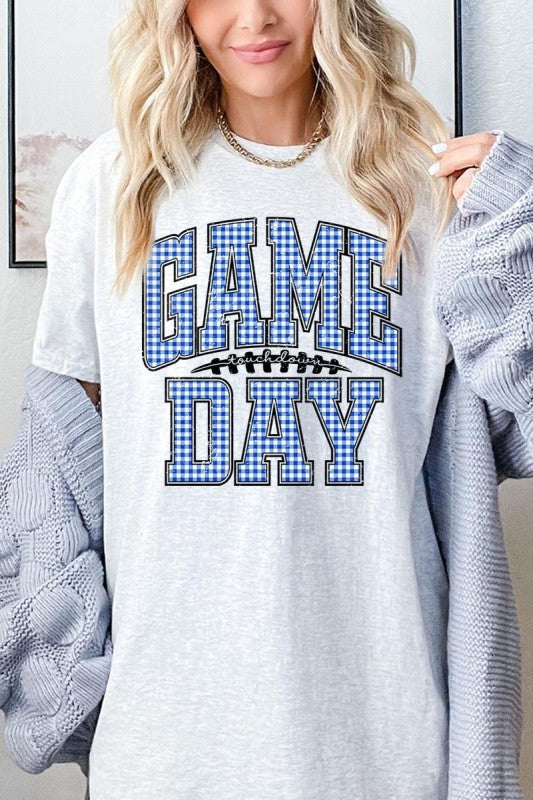Blue Gingham Game Day Graphic Heavy Cotton Tee