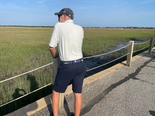 Charleston Belt Golf Green Gator Croc Leather Hand-stitched Needlepoint Belt Navy Blue