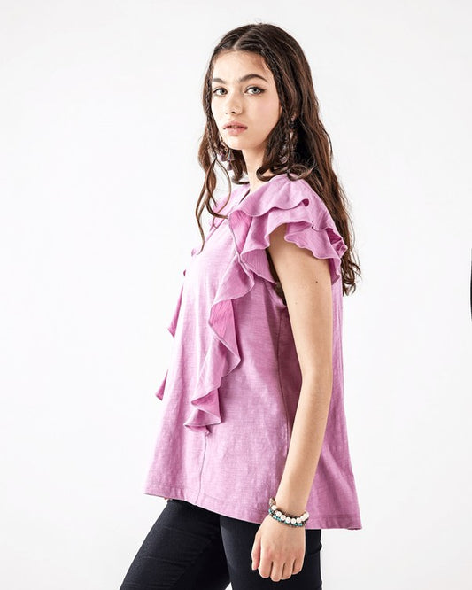 Cotton Slub Double Ruffle Tiered Sleeve Tee