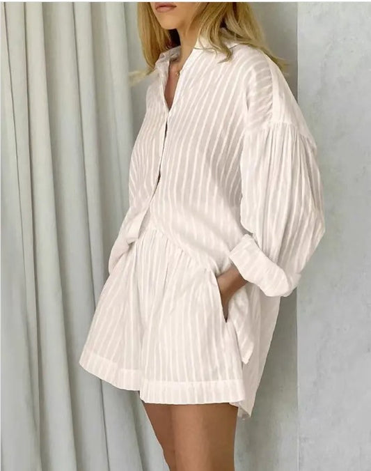 2-piece matching long sleeve and shorts set