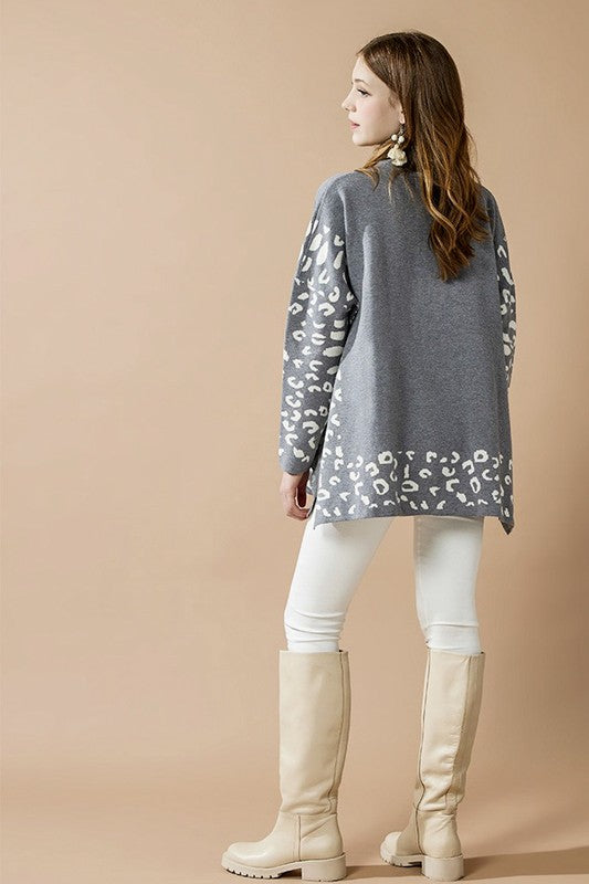 Plus Oversize MockNeck Leopard Print Sweater Tunic