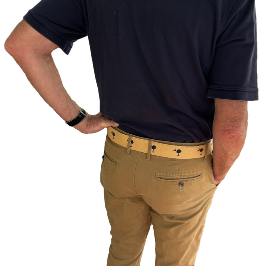 SC State Flag Palmetto Moon Belt Beige Navy Blue Embroidered Woven Web Award Winning Design