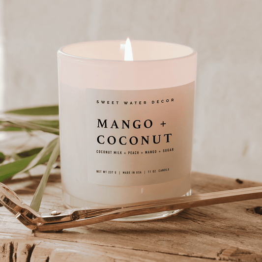 Mango and Coconut Soy Candle - White Jar - 11 oz
