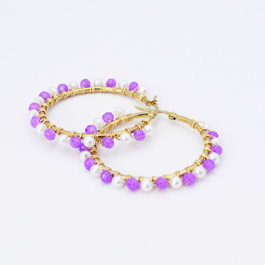 Purple/White Beaded Hoop D54