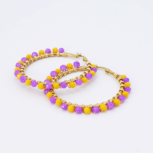 Yellow/Purple Beaded Hoop D54