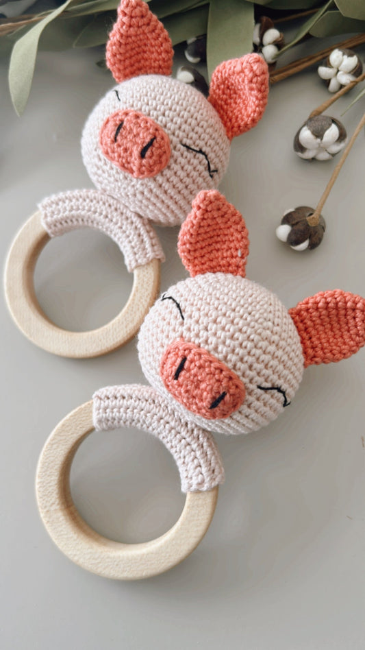 Farm Baby Shower Gift- Pig Rattle