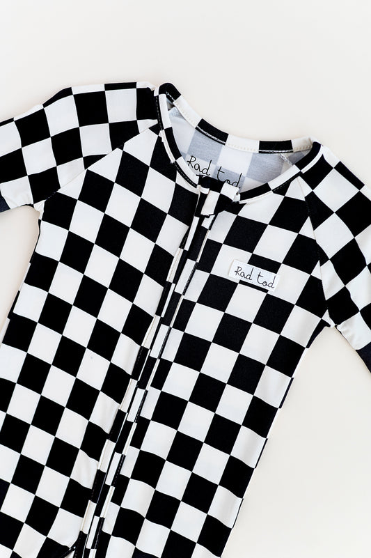 BLACK CHECKERED BAMBOO ONESIE