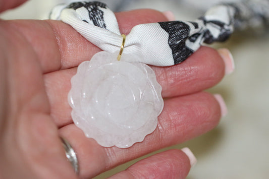 Fifth Avenue Bloom Scarf Necklace - White Jade