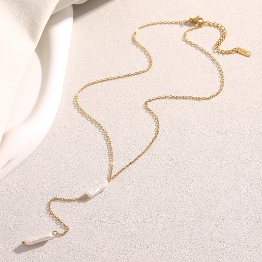 Delicate Drop Pearl Lariat Necklace - Stainless Steel