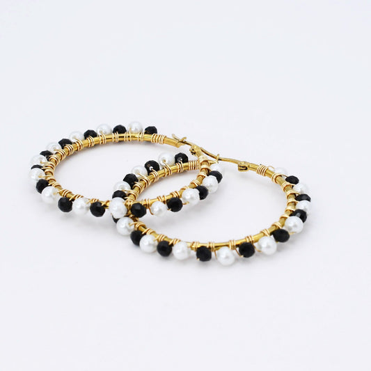 Black/White Beaded Hoop D54