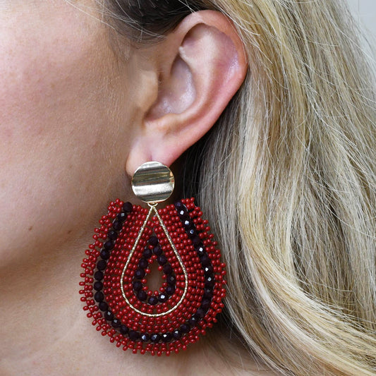 Orange Football Beaded Earring S32