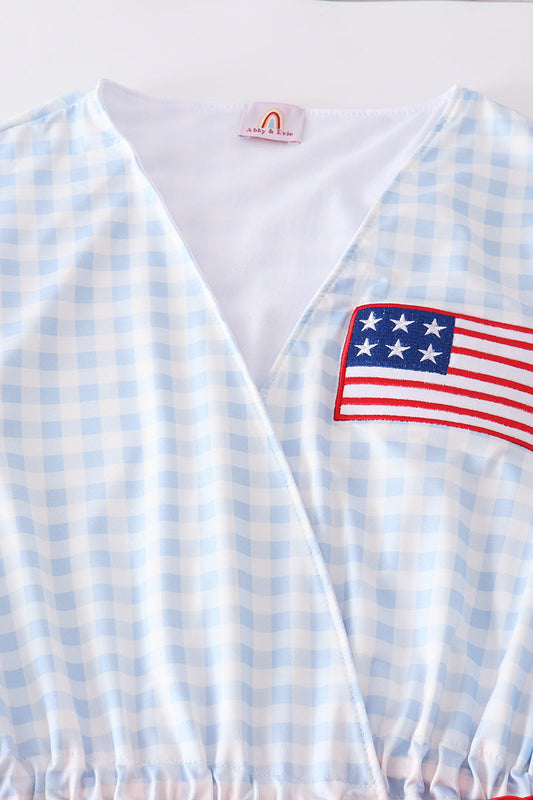 Patriotic plaid flag embroidery woman bikini swim cover up
