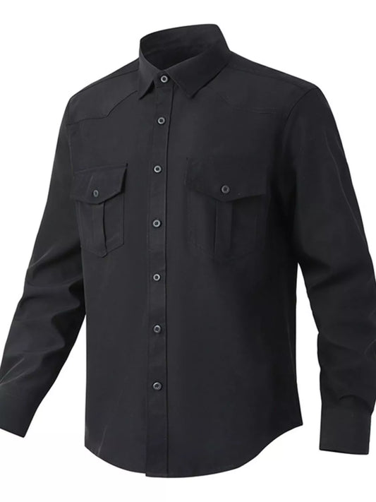 Men's Solid Color Long Sleeve Button-Up Shirt