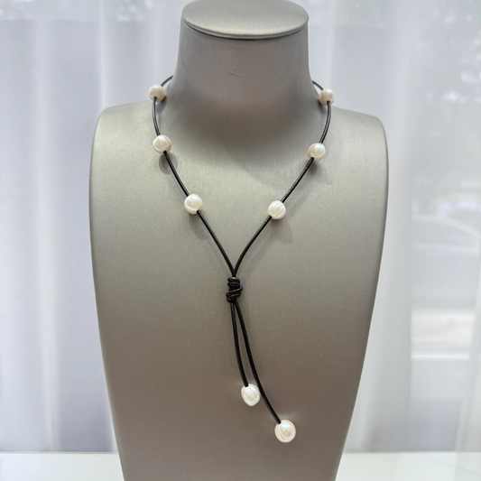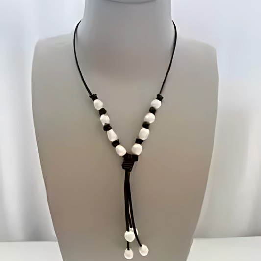 Backroads Beauty Leather and Pearl Necklace