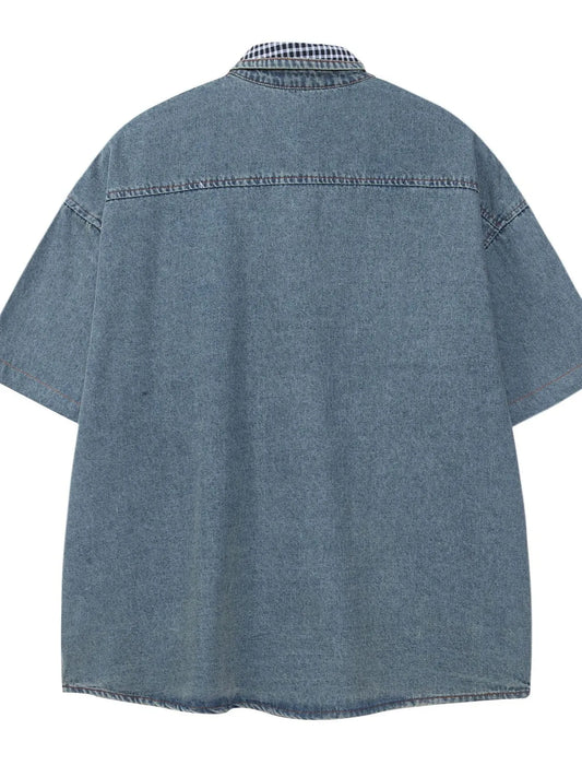 Men's Vintage Bear Patchwork Oversized Denim Shirt