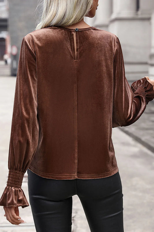 Eyelet Embroidered Smocked Cuff Sheer Blouse