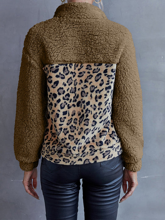 Ivy Lane Leopard Quarter-Snap Teddy Sweatshirt