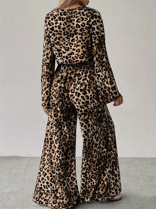 BiBi Waffle Knit Leopard Blocking with Crochet Lace