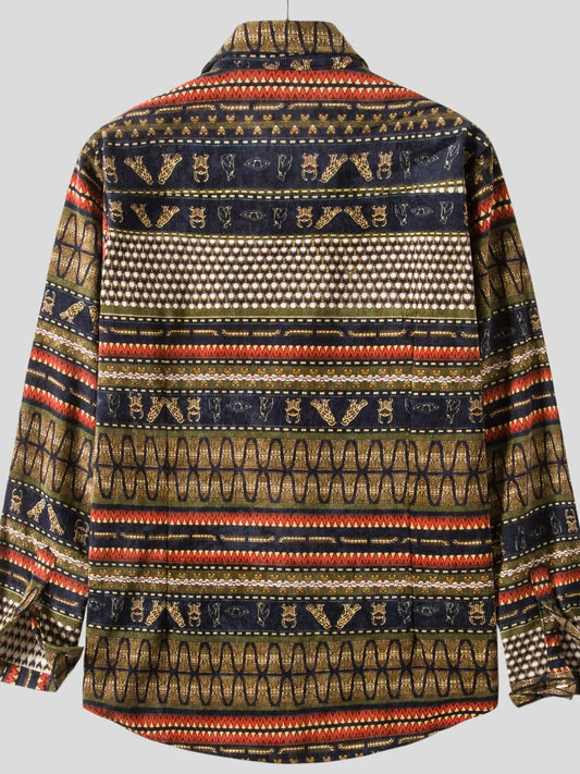 Men's Vintage Ethnic Print Button Down Shirt