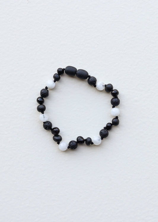 Raw Black Baltic Amber + Moonstone || Anklet or Bracelet