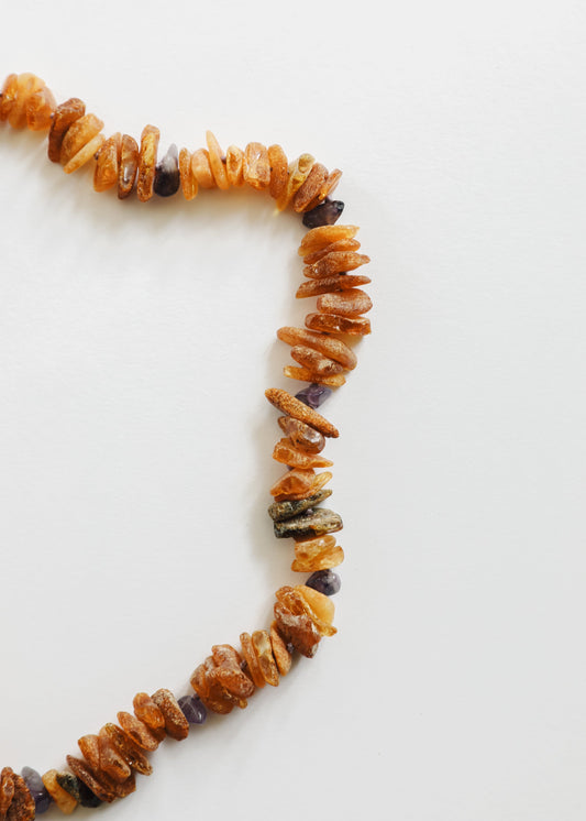 Raw Honey Baltic Amber + Raw Amethyst || Necklace