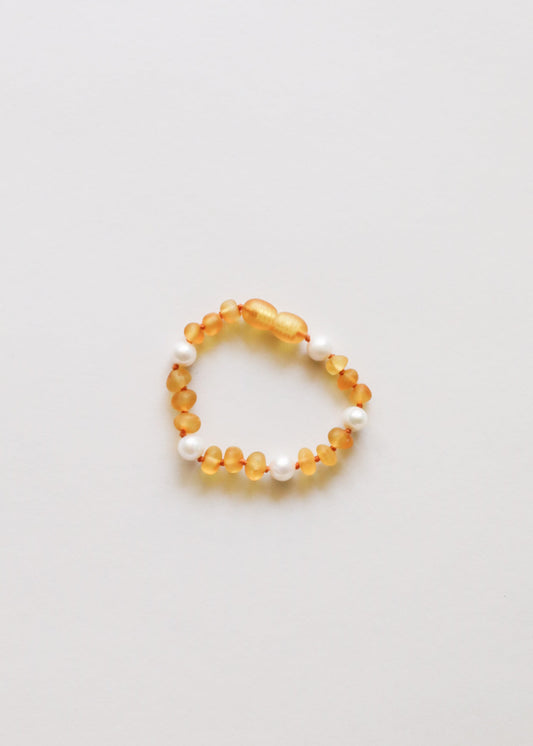 Raw Honey Baltic Amber + Pearl Halo || Anklet or Bracelet