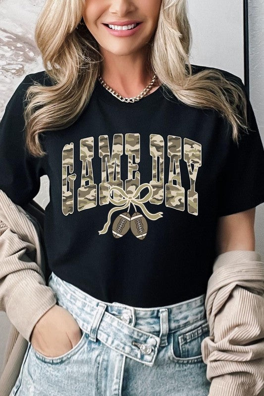 Red Yellow Football Game Day Bow Graphic Plus Tee