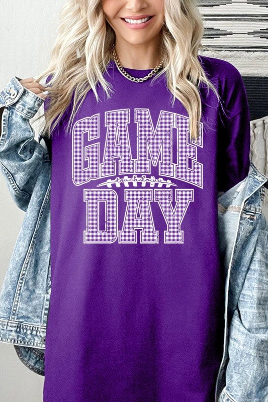 Purple Gingham Game Day Graphic Heavy Cotton Tee