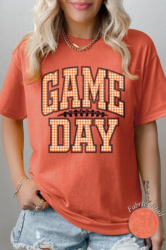 Orange Gingham Game Day Graphic Heavy Cotton Tee