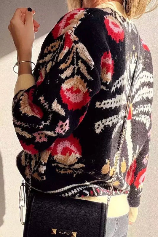 SO ME Floral Pattern Long Sleeve Button Sweater Cardigan