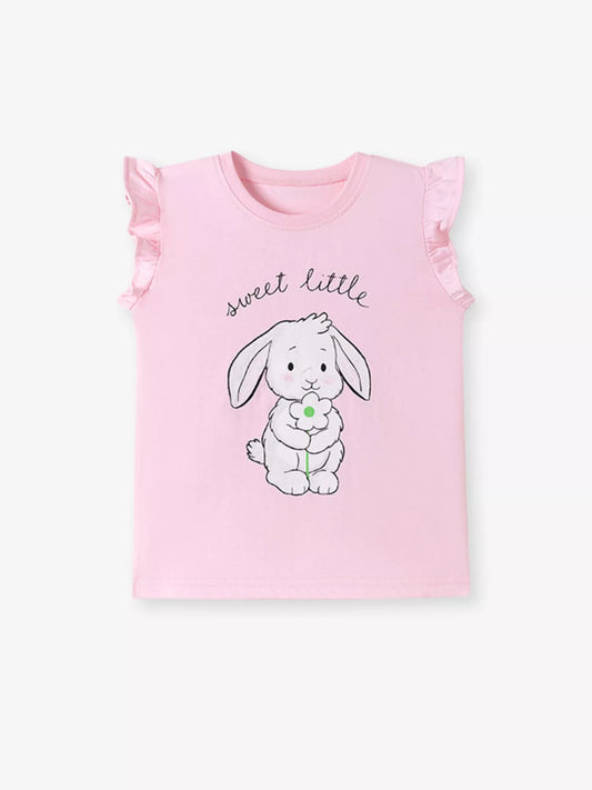 Children's Bunny Graphic Ruffle Sleeve T-Shirt