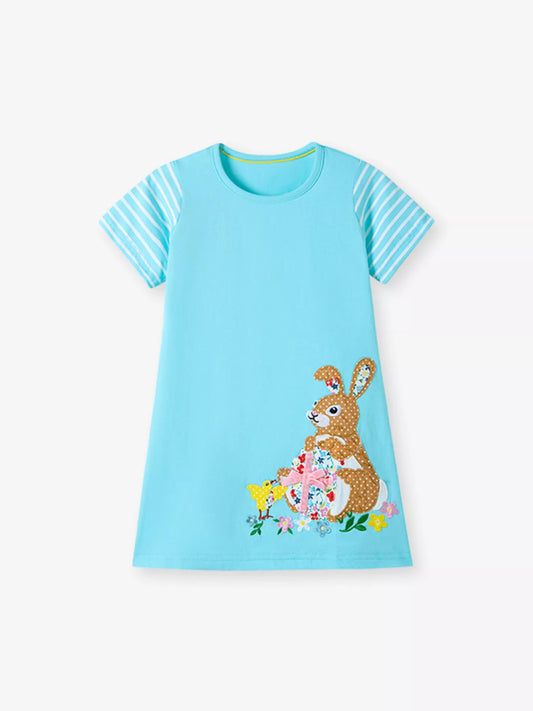 Children's Striped Unicorn Ruffle Sleeve Dress