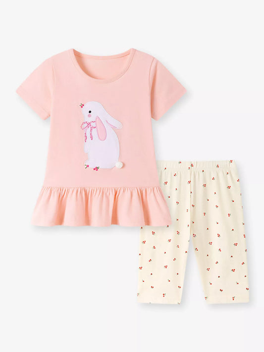 Children's Bunny Embroidered Top & Capri Leggings Set
