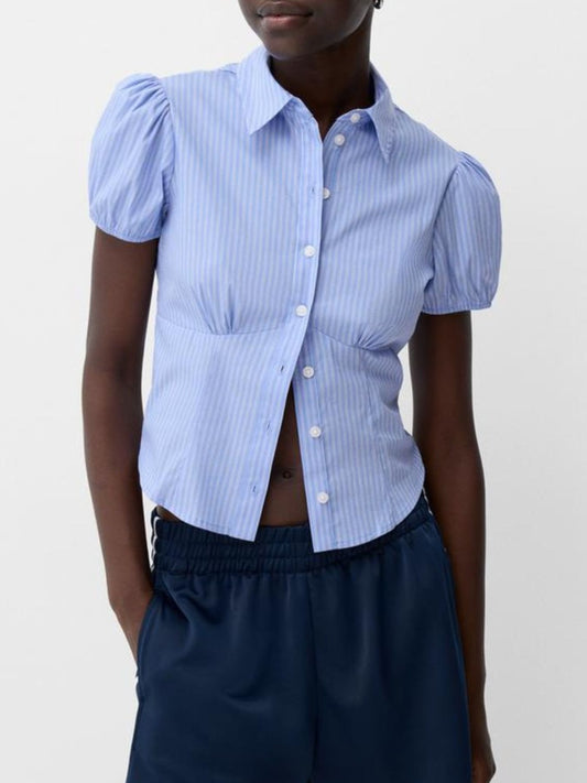Striped Button Up Puff Sleeve Shirt