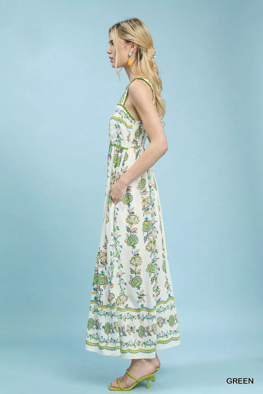 Umgee Floral Print Tiered Midi Dress