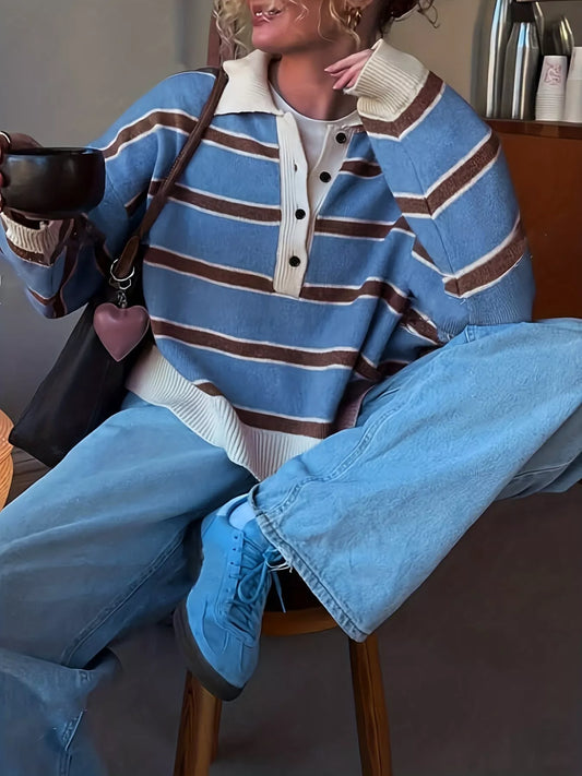 Striped Button Detail Sweater