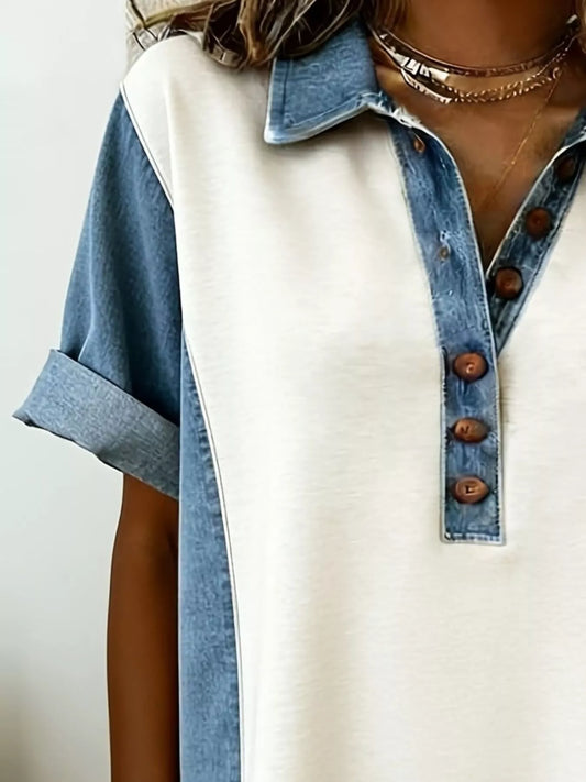 Denim Patchwork Button Front Mini Dress