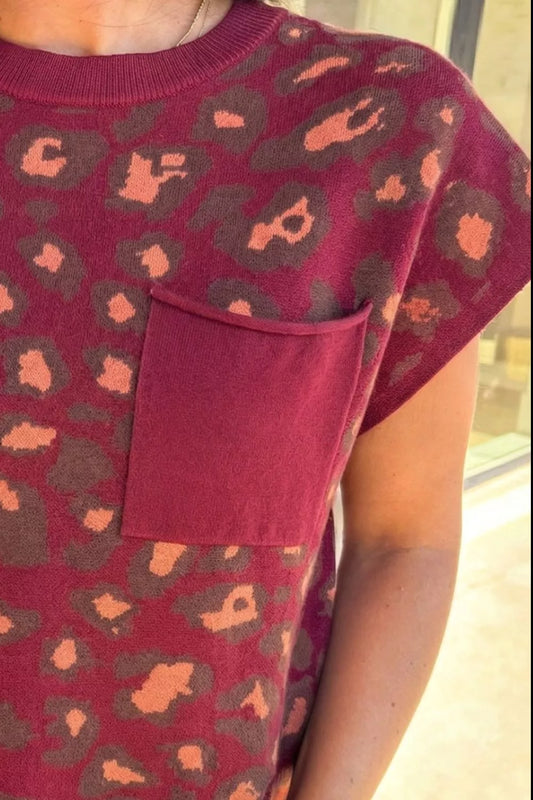 Leopard Print Cap Sleeve Knitted Top