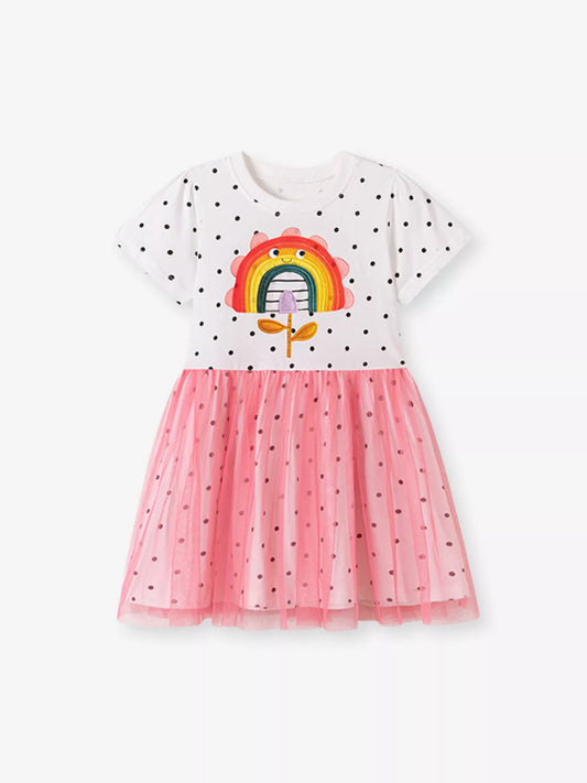 Children's Rainbow Flower Polka Dot Tulle Dress