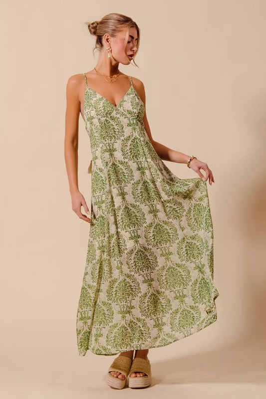 SO ME Damask Floral Summer Maxi Flowy Dress With Open Back