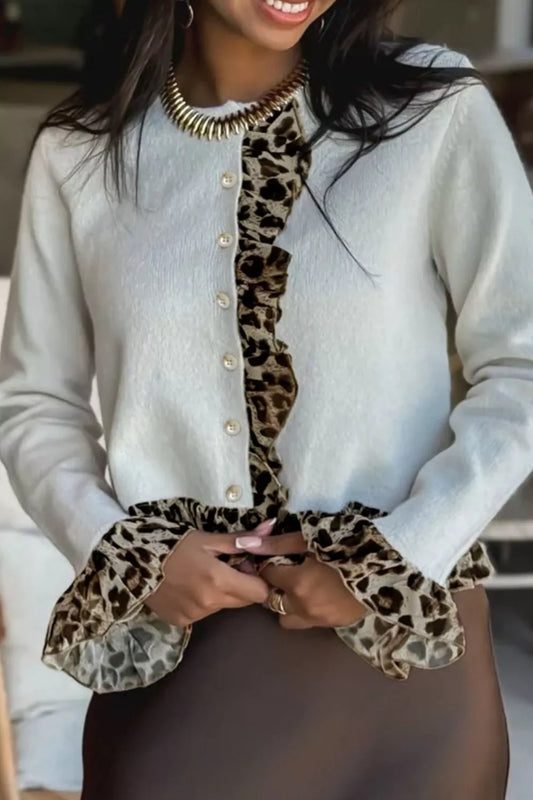 Leopard Trim Ruffle Cardigan