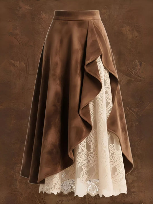 Suede & Lace Midi Skirt