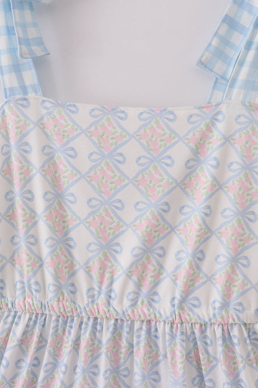 Plaid floral bow print mom tiered dress