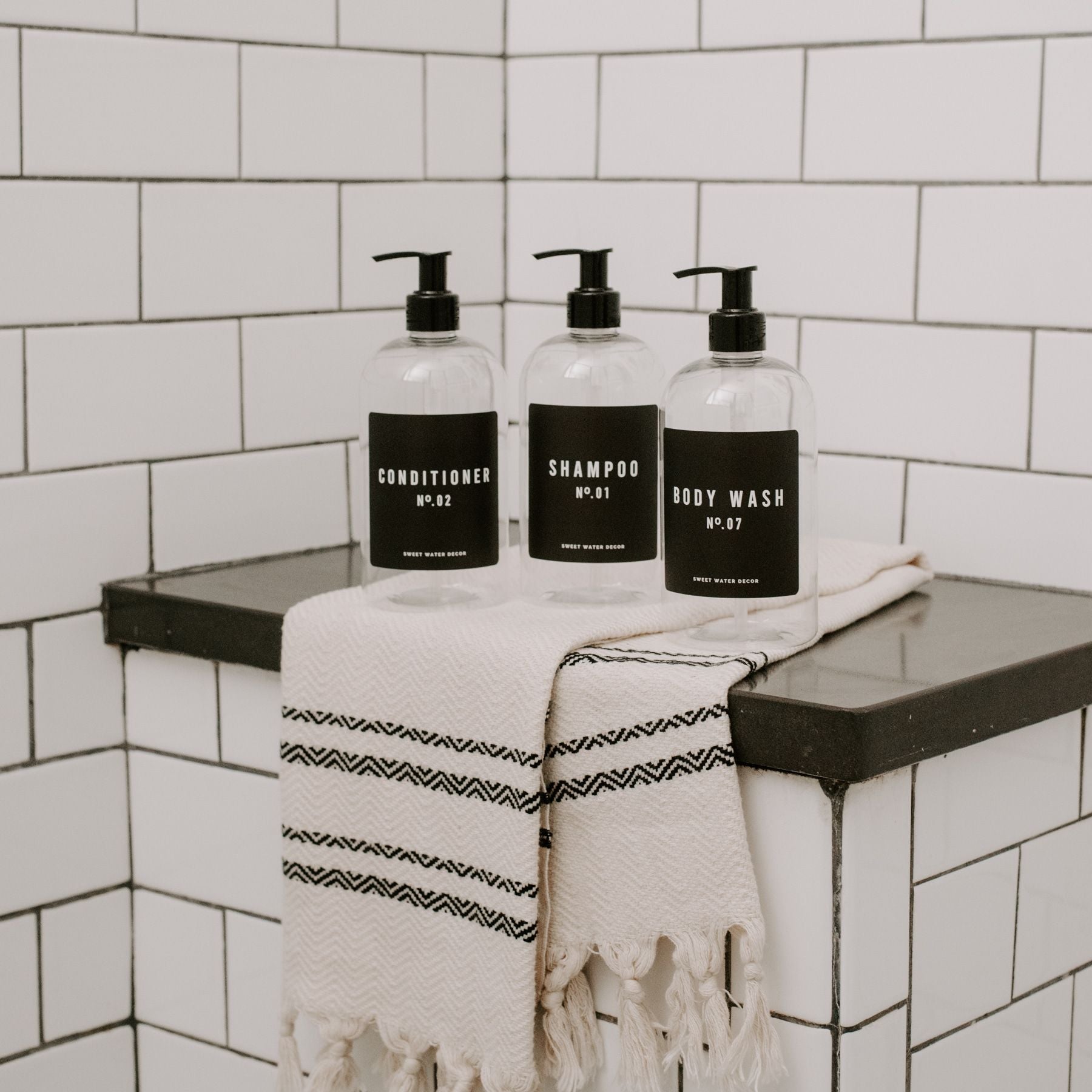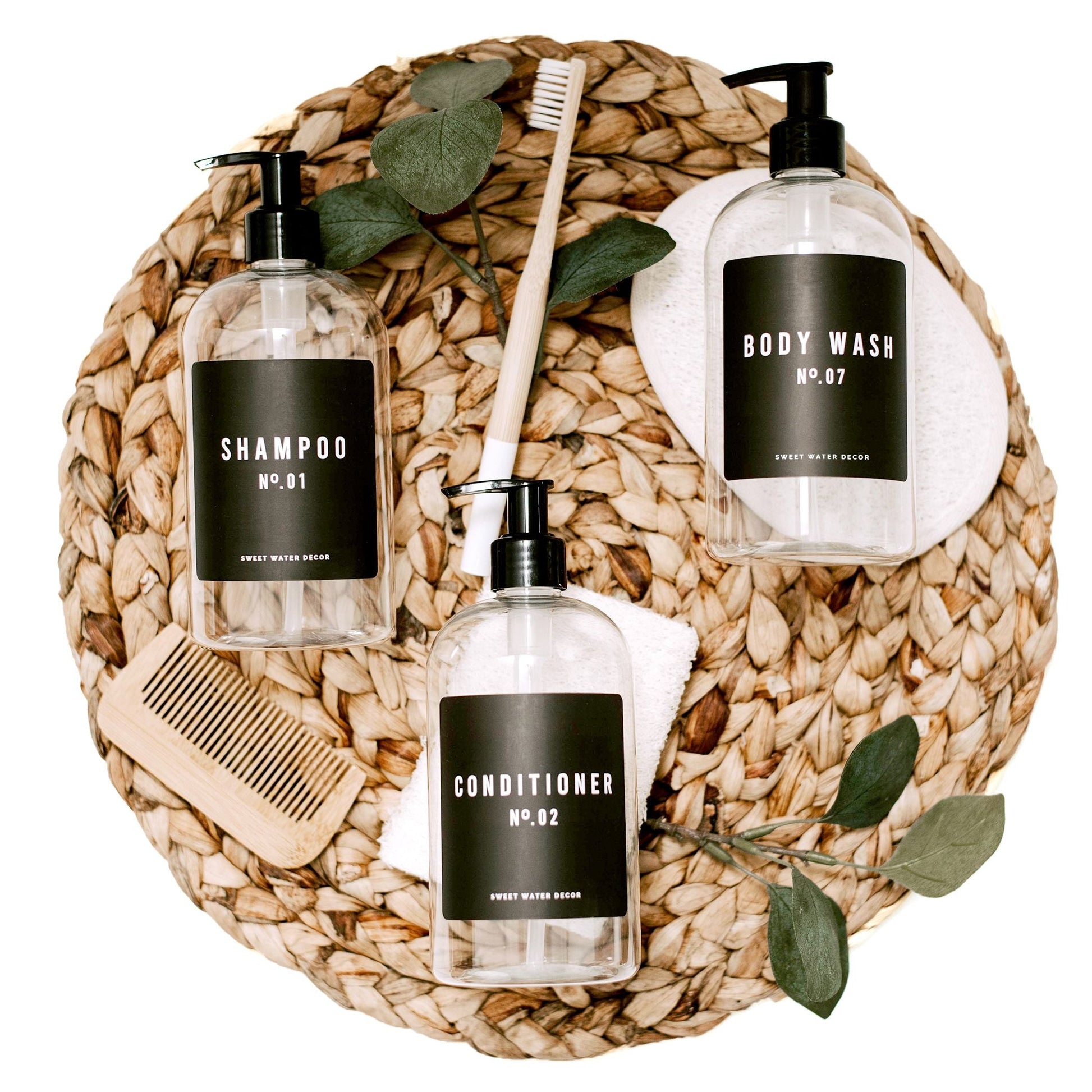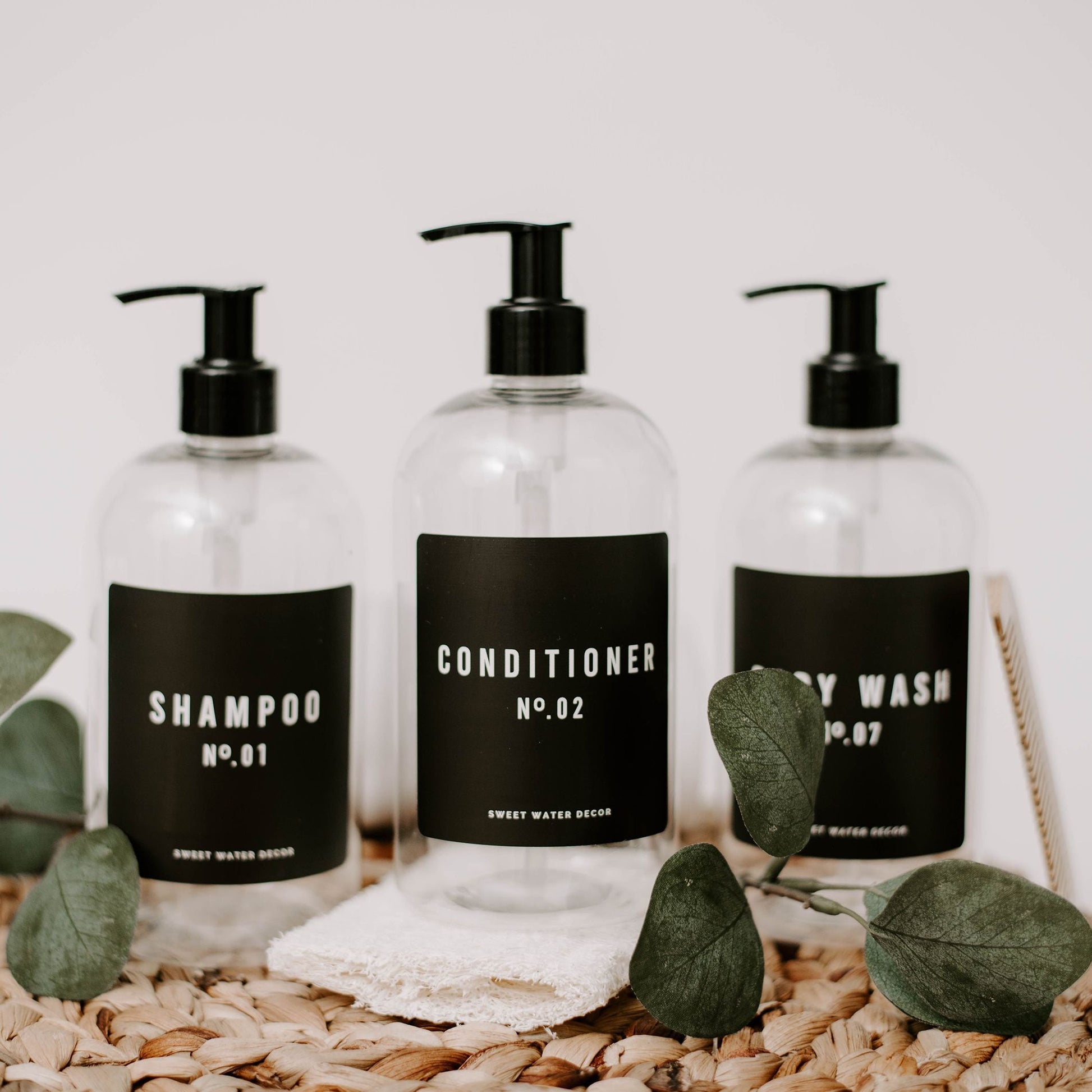 16oz Clear Plastic Bath + Shower Dispenser Set of 3 - Black Label