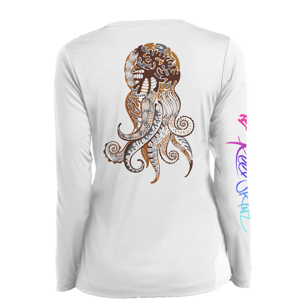 Reelskinz Long Sleeve V-NECK shirts are manufactured for extreme comfort and flexibility. All our long sleeve high performance fishing shirts are all SPF rated 50, and made from the most comfortable, Moisture wicking, and lightest fabrics in the industry. The polyester polyex and 8 way stretch recoil technology also allows for extreme flexibility, quick drying and cooling capabilities. All white shirts are bleach friendly and will not effect colors or prints.
