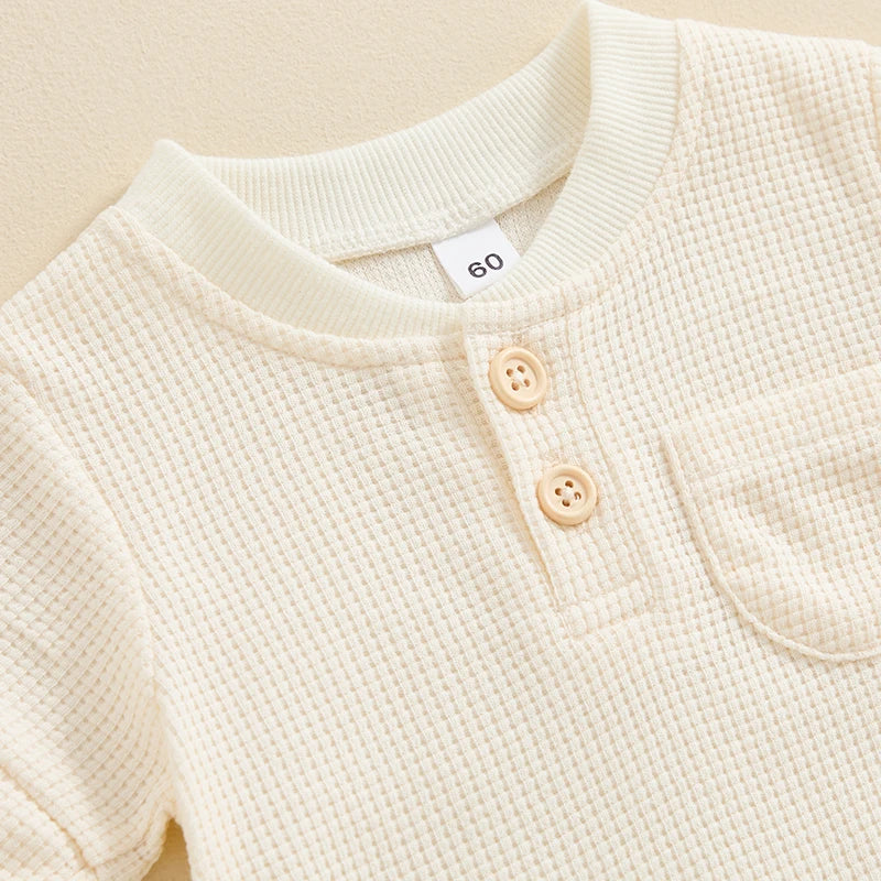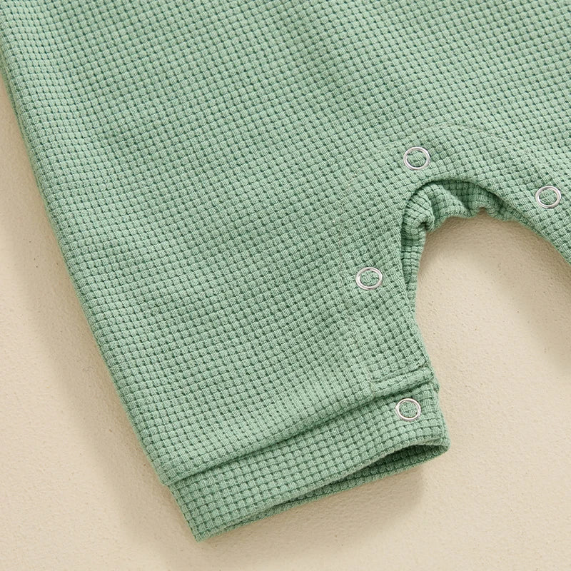 Baby Boy Girl Jumpsuit Summer Short Sleeve Solid Color Waffle Button Romper Playsuit