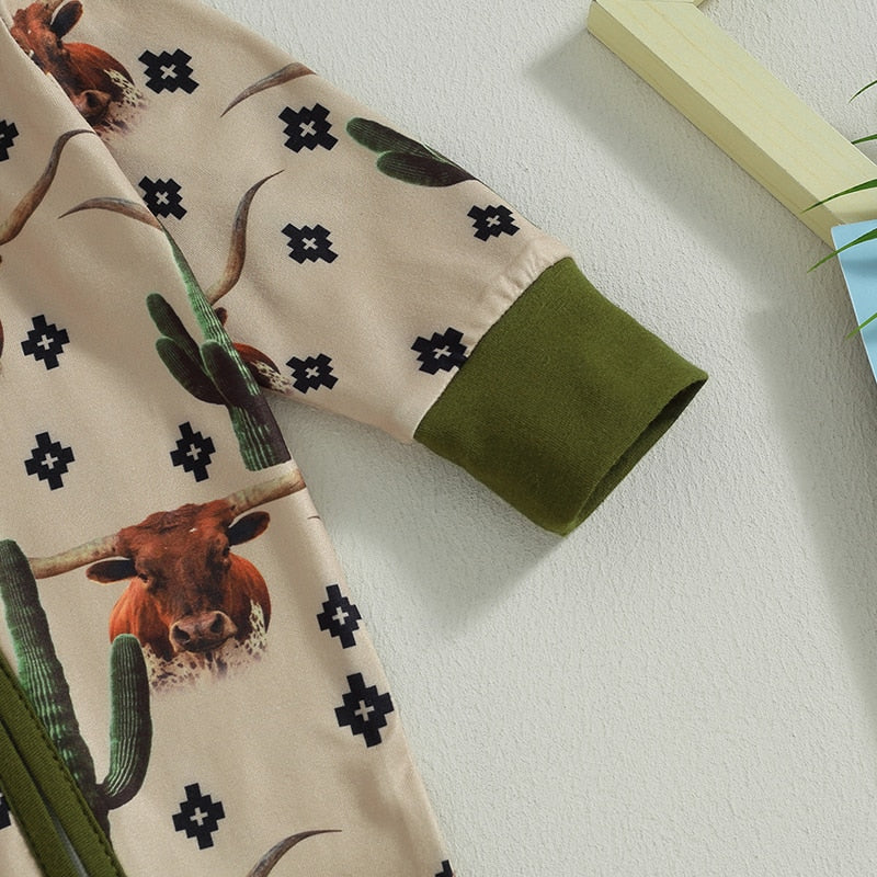 Baby Boys Girls Jumpsuit Long Sleeve Cow/Horse Print Zipped Autumn Romper Clothes