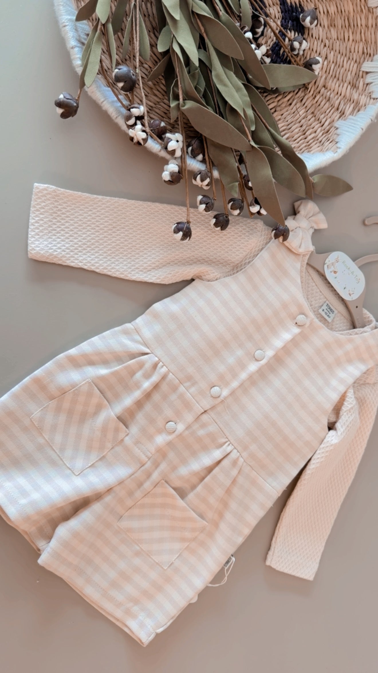 Soft and stylish baby romper featuring a neutral gingham pattern with textured long sleeves. Designed for comfort and easy wear, this timeless one-piece is perfect for everyday outings or special moments.
