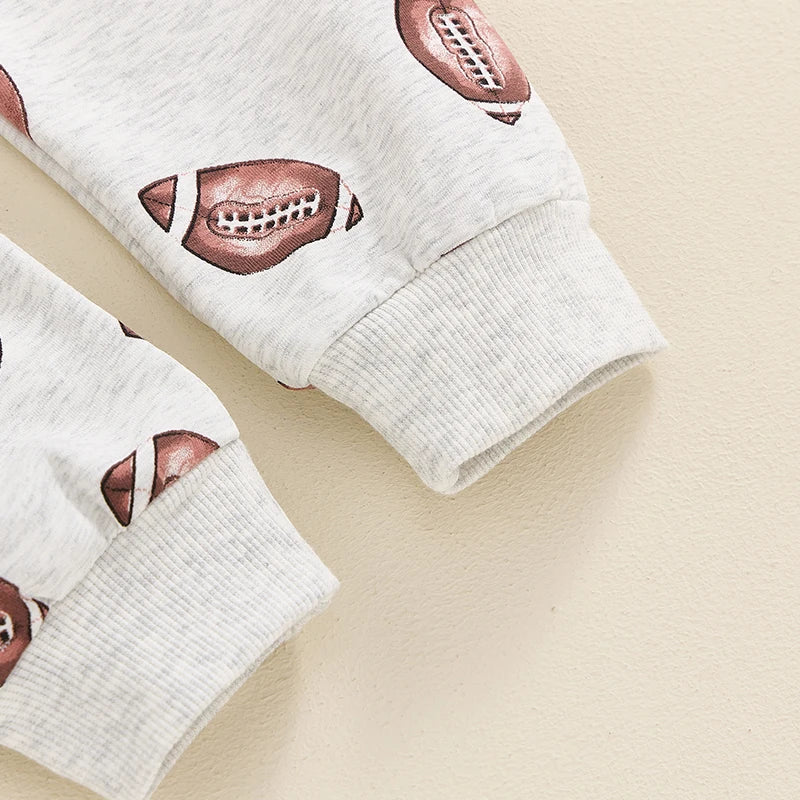 Baby Toddler Boys Girls 2Pcs Football Print Long Sleeve Round Neck Top Drawstring Pockets Pants Set