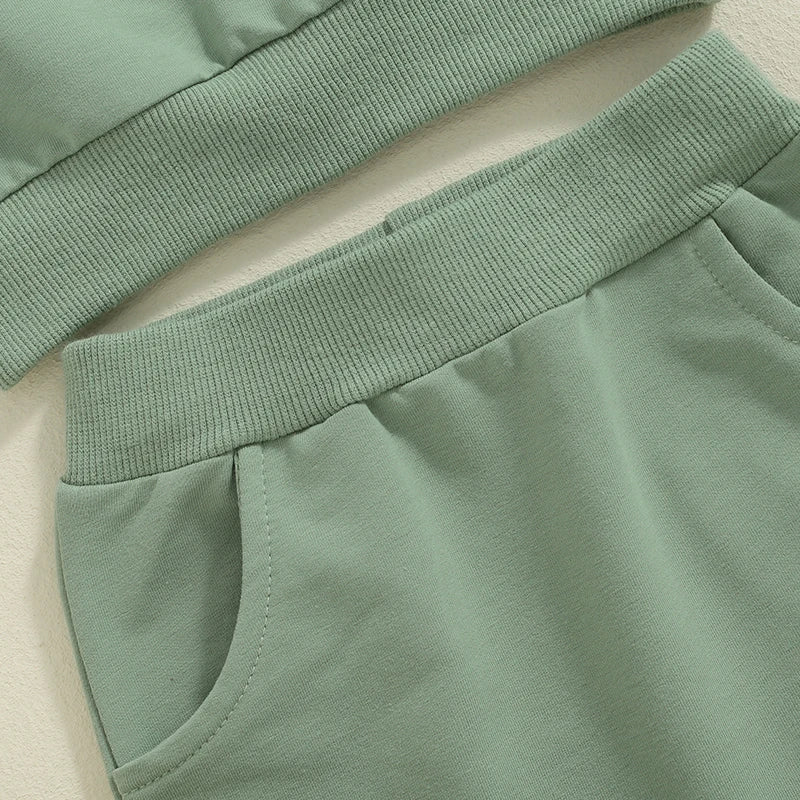 Baby Toddler Boys Girls MINI Set Letter Print Long Sleeve Round Neck Top Pockets Long Pants Outfit